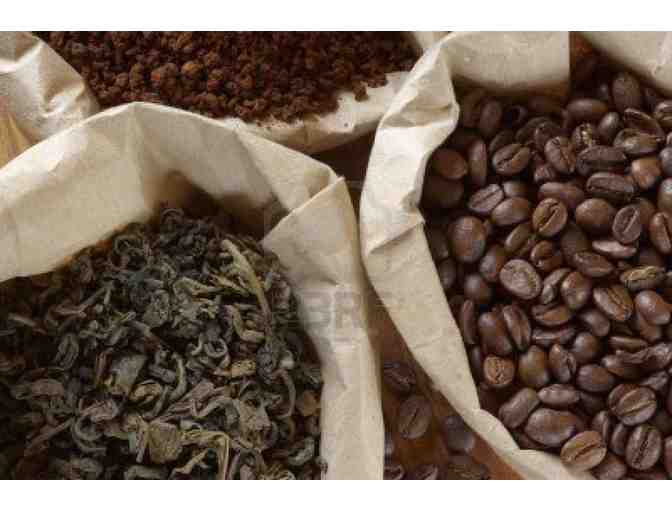 Box includes one gift certificate for whole bean coffee or loose tea up to $15.50 and two coupons for a free cappucino or any coffee or tea beverage.