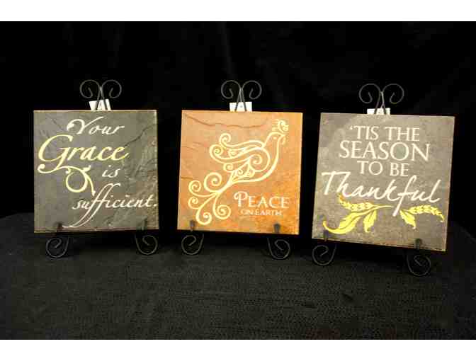 These wall hangings come with black metal stands as will. They will fill a room with inspiring thoughts:
