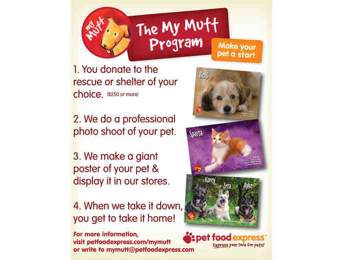 A giant poster will be produced and hung at Pet Food Express for 1 year