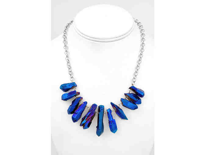 Magical Blue Quartz on 17" silver chain with 2" extender.