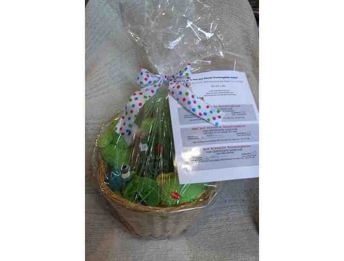 Treat your furry Valentine to a basket filled with toys and treats as well as certificates for 1 day of dog or cat boarding, 1 day of doggie daycare and 1 grooming session at Bed and Biscuits & Groomingdales in Santa Cruz.