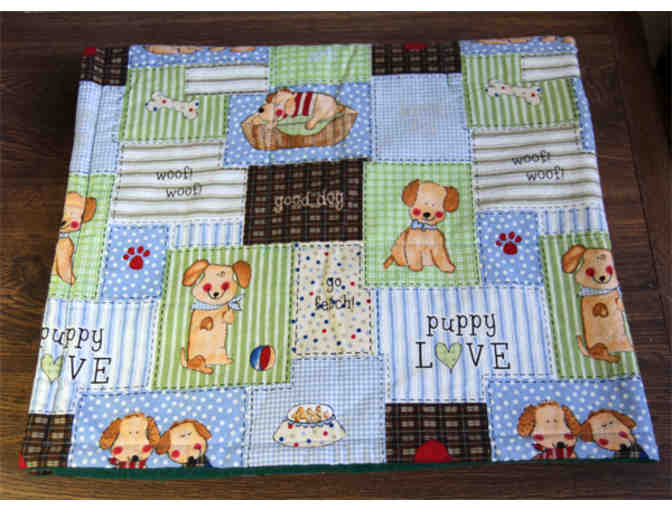Adorable quilt pattern with cute dogs and puppy love on one side and soft fleece on the other for your special friend to curl up in.