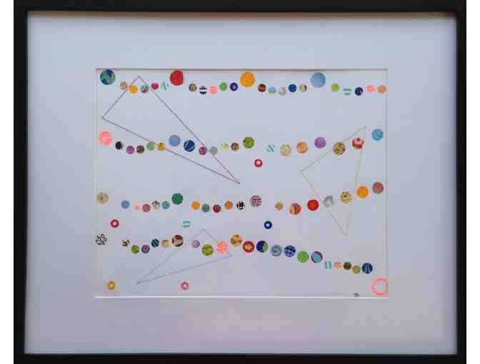 The image here is not for sale but rather an example of the artwork that can be commissioned through the auction. It depicts the opening lines of "Winter White Hymnal" by The Fleetfoxes and was created for and sold at a dance company auction. To commission a work simply choose a song you would like represented and any preferences you have for color scheme and Julie will create a one-of-kind work just for you. Maximum size is 11" x 14" (framed in a 16" x 20" black frame). Smaller sizes are available. The final work can be picked up at Morningside Montessori School or shipped for an extra charge based on the size of the art and delivery distance. Please allow 8-10 weeks from the order placement date for delivery.