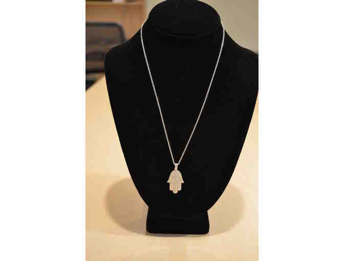 Lady's 14k White Gold Hamsa Pendant on a 20 inch white gold chain.