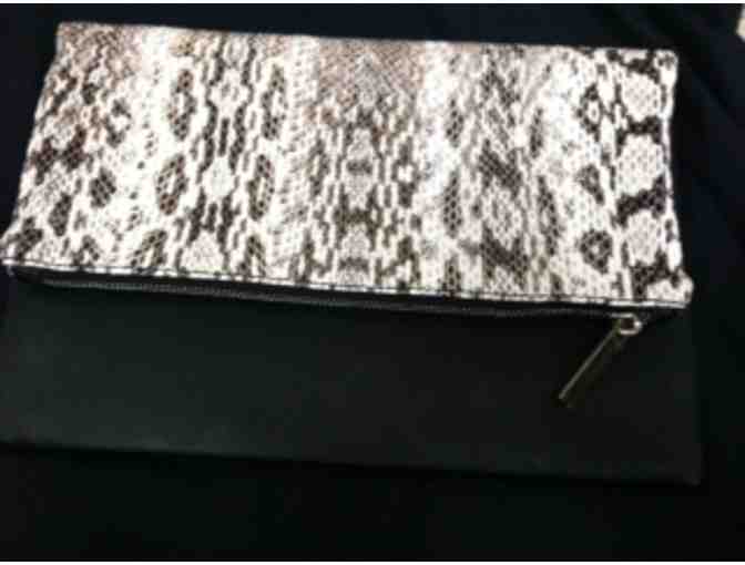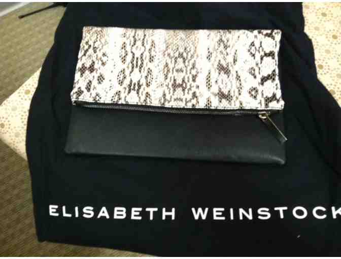 "Paris foldover clutch" A luxury water snake and leather clutch by designer Elisabeth Weinstock. Comes in the original Elisabeth Weinstock bag. This is brand new and a beautiful purse for a night on the town.