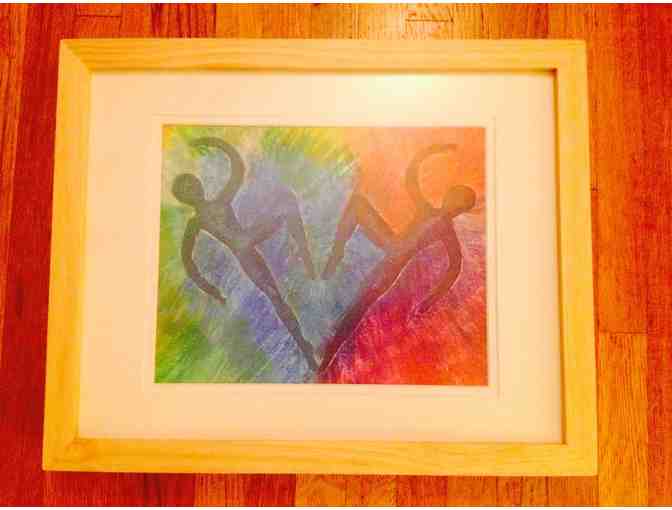 "People Heat" Painting by our beloved Ms. D'Arcy (7th Grade). It has two people showing symmetry with rainbow background.