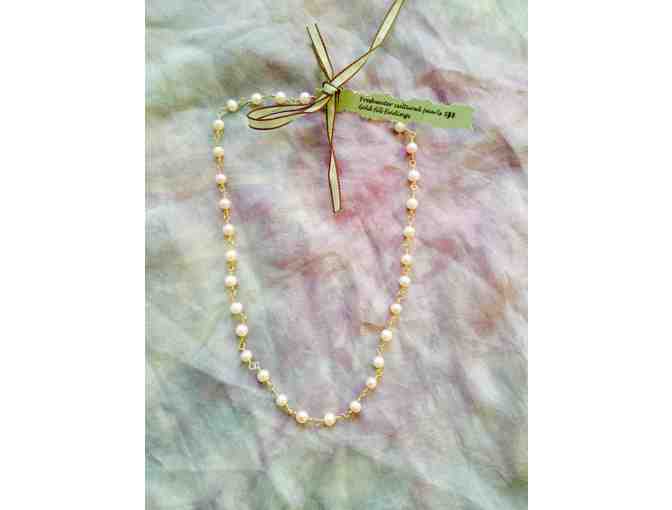 Pink freshwater pearl necklace with gold-fill findings. Perfect special gift for your daughter. Handcrafted jewelry by OCS mom Kerry Carnahan.