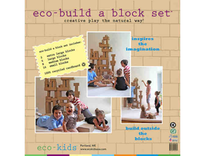 eco-build a block set includes 2 extra large boxes, 4 large, 8 medium and 16 small boxes. Carrying case measures 16.5"H x 20"W x 4.25"D.
