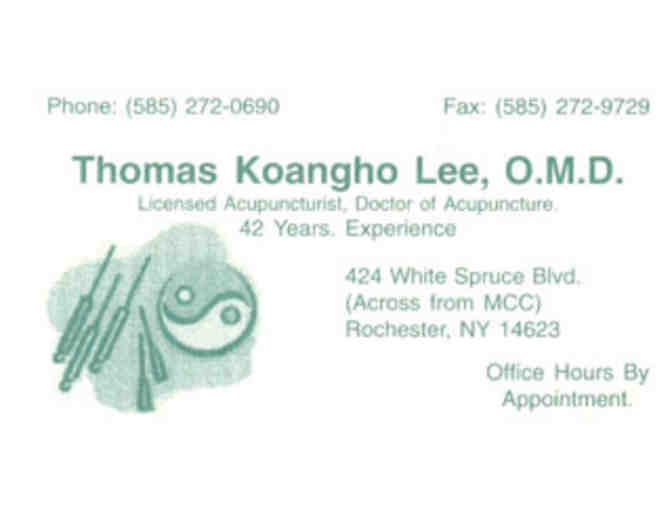 Dr. Thomas Koangho Lee, licensed acupuncturist, located at 424 White Spruce Boulevard in Rochester, offers a certificate valued at $160 for an acupuncture treatment. Dr. Lee has 53 years of experience starting his practice in Korea in 1961 and has been practicing in Rochester since 1976. Acupuncture treatments, along with a holistic approach, help the body recover faster from most conditions. You can receive help with smoking, weight control, sports injuries and more. Please visit WWW.ACUSIDE.COM or call 585-272-0690 for more information.