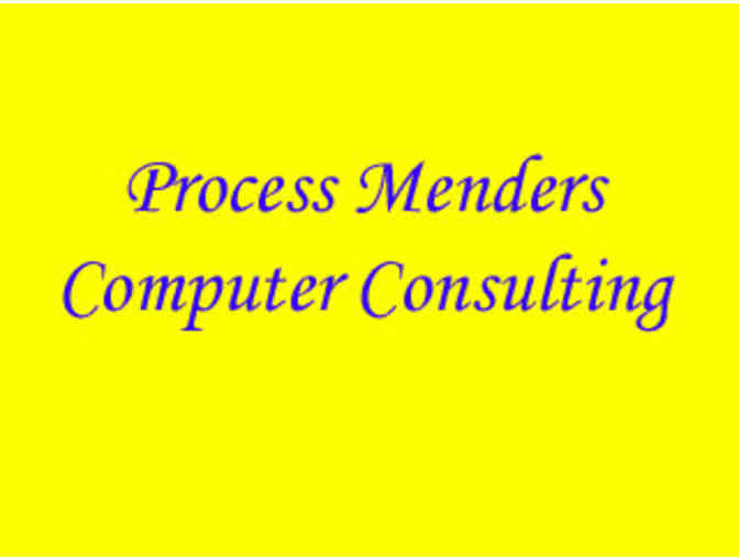 Process Menders offers a certificate for a session up to 2 hours of consulting/computer training in your home or place of business. One certificate buys two hours of consulting/training. Software includes, but is not limited to Microsoft Office (Word, Excel, Access, Outlook, Visio), Adobe Photoshop, Illustrator, InDesign, Quicken/Quickbooks, PC or Mac. High bidder must provide own hardware and software. Call immediately to schedule your session at 585-752-8085.