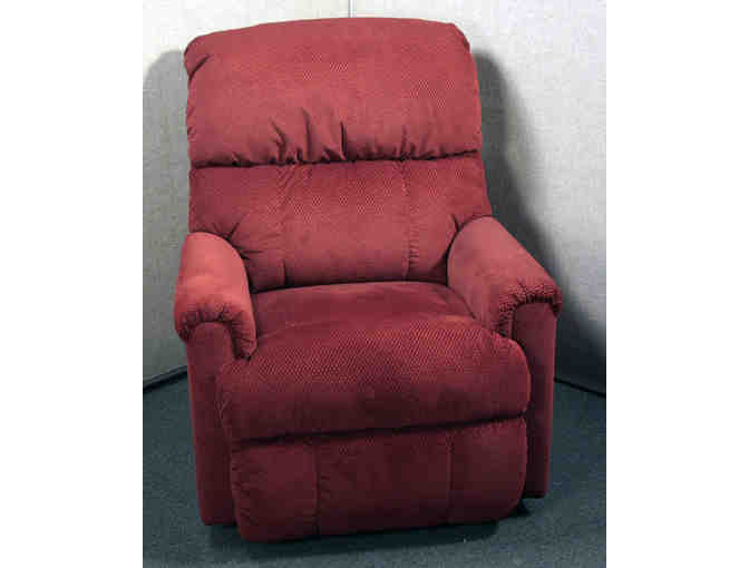 Safety technology automatically prevents leg rest from closing when objects are encountered. Exclusive La-Z-Boy back support fully supports lower back in all positions. Color is maroon.
