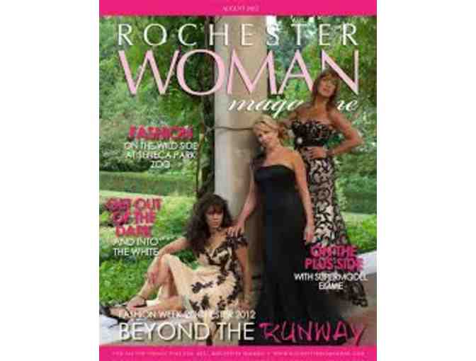 Rochester Woman Magazine offers a certificate for a Quarter-Page of Advertising Space. Whether your business is small or large, new or established, Rochester Woman Magazine offers a unique opportunity to reach over 60,000 business professionals in the Rochester region. The magazine has strong editorial focus and is actively picked up by readers. It has built up a loyal following -- a readership of your potential clients! Thousands of women rely on Rochester Woman Magazine as their resource for better living. Nearly 15,000 print copies are distributed throughout the Greater Rochester area, including Monroe and surrounding counties. The electronic interactive version of Rochester Woman Magazine is distributed to over 60,000 readers via email to extend the visibility of your business even further. The high bidder's dynamic color ad will run in one issue. Bid high to build awareness of your company and connect with new clients! The high bidder is asked to please call Rochester Woman Magazine to make arrangements.