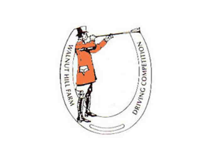 Want to re-live a time when a carriage ride was the way to travel? The Walnut Hill Farm Carriage Competition scheduled August 6-19 2014, offers a patron package for the 2014 Event. The package includes six passes to all five days (10 performance sessions) of the competition; membership privileges in the Patrons Club Tent, where guests may purchase both fine spirits and a deliciously-prepared lunch that will please the most discriminating palate; a Walnut Hill Program; and a special souvenir memento of the visit to this year's Competition. The package is not exchangeable or refundable. High bidder is requested to complete a form and send it to Tricia Remley-White, Chair of the Event, so that tickets, class schedule, and other appropriate information will arrive prior to the beginning of the 2014 Walnut Hill Farm Carriage Competition. Visit the website www.walnuthillfarm.org for additional information. (Equivalent ticket sells at the gate for $15 per person per day.)