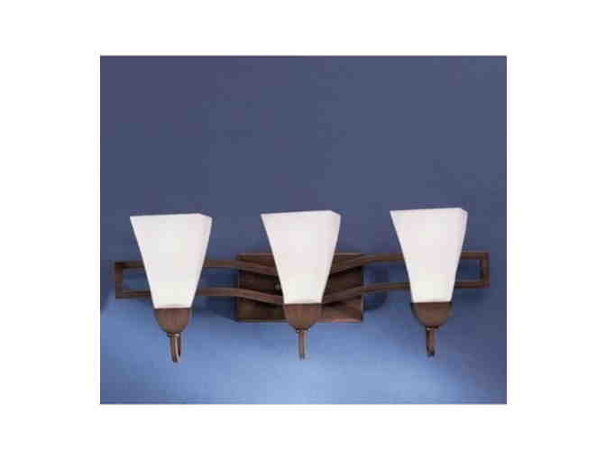 KICHLER'S ENERY EFFICIENCY BATH FIXTURE DONE IN COPPER MOUNTAIN FINISH AND WHITE SATIN ETCHED GLASS