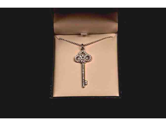 The Source of Gold and Silver of Rochester offers a Sterling Silver & Cubic Zirconia Key Necklace on an 18'' Bead chain. Please note: this necklace cannot be returned or exchanged