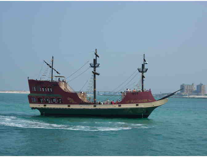 Unlock the treasure of your heart and let your dreams come true as you embark on a thrilling pirate adventure aboard Buccaneer! Captain Cannonball and his motley crew will interactively entertain your whole family aboard Captain Steve and Wendy's family-owned and operated 100 foot Pirate Ship. Join the merriment of pirate stories, sword fights, treasure hunts, water gun battles, music and games if you dare set sail on the seas of Destin! We cruise year-round, up to 4 trips daily, Monday through Saturday. Reservations are recommended, and accepted two weeks in advance. Passes are good for two adults and two children and cannot be combined with any other offers. Expiration 12/01/2015. Located in HarborWalk Village in Destin, Florida.