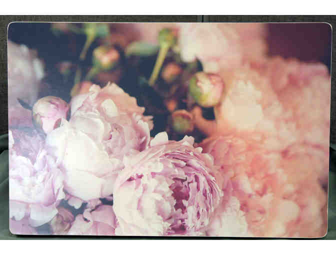 Photographer Hannah Betts offers a mounted 24 x 16' photograph of a pink peony