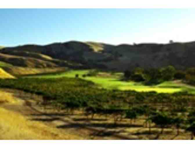 Golf for two players Monday through Thursday at the Greg Norman designed 18 hole championship golf course. The course is a picturesque 7,181-yard, par-72, golf course tucked away in the scenic, Livermore Valley. This course offers extraordinary visual panoramas and a diversity of play. Round of gold includes range balls and a golf cart.
