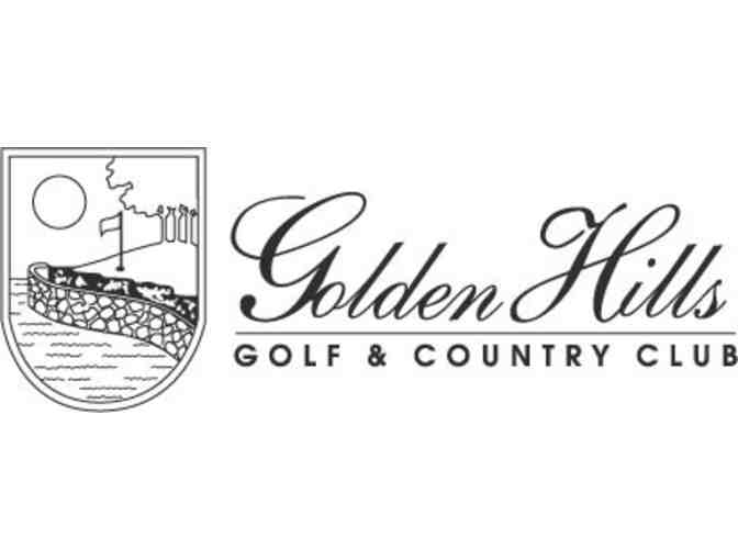 An 18-hole round of golf for four at Golden Hills Country Club in Lexington SC. Golf carts and greens fee included. Appropriate golf attire required. Not valid holidays. Certificate expires May 31, 2015. URL: www.goldenhillsgolf.com