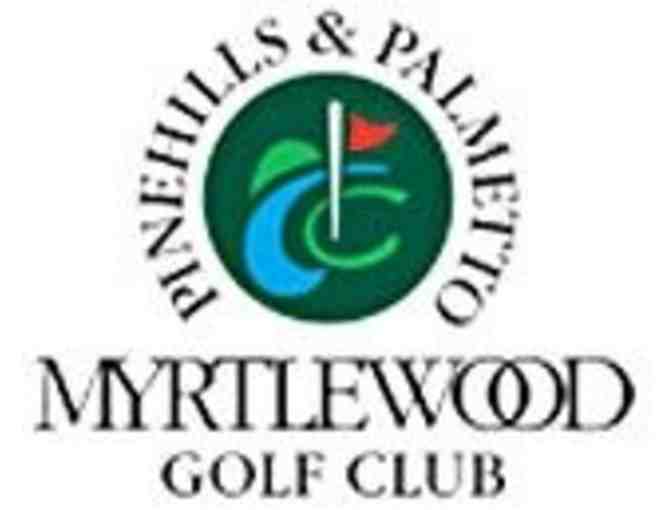 An 18-hole round of golf for four with carts at Myrtlewood Golf Club - Pine Hills Course in Myrtle Beach, SC. Golf appropriate attire is required. Certificate expires June 8, 2015. Not valid in March, April, or October. Please call (843)235-4653 to schedule your tee time, which can be made 48 hours in advance. Please mention this certificate when establishing your tee times. URL: http://www.myrtlewoodgolf.com/