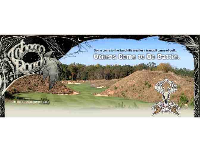 Expires Early! An 18-hole round of golf for two with cart at Tobacco Road Golf Course in Sanford, NC. Restrictions: Cannot book more than 48 hours in advance. Not available June 9th - June 17th, 2014. Certificate expires December 31, 2014. URL: www.tobaccoroadgolf.com.