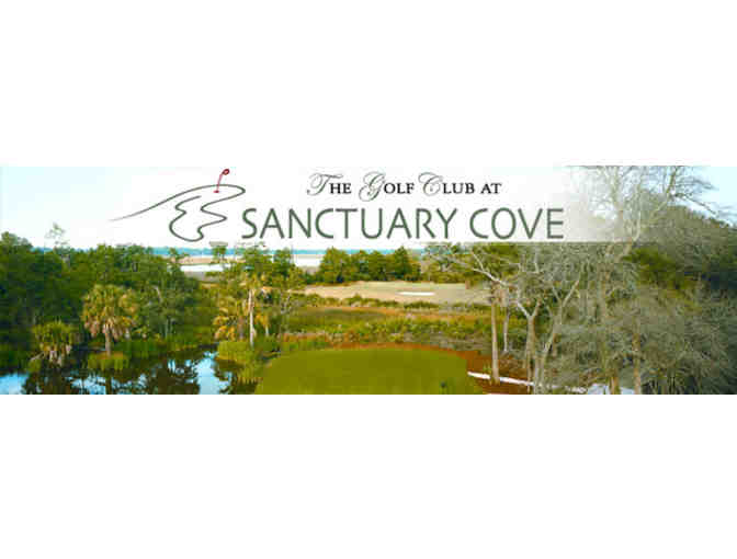 An 18-hole round of golf for four with carts at The Golf Club at Sanctuary Cove in Waverly, GA. Proper golf attire is required. Call ahead to reserve tee time. Expires one year from purchase. URL: http://www.sanctuarycovegolf.com/