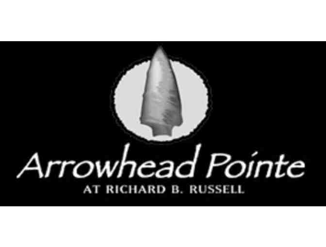 An 18-hole round of golf for four with carts at Arrowhead Pointe in Elberton, GA . Proper golf attire is required. Present certificate at check in. Must schedule tee time in advance with Pro Shop. Certificate expires April 3, 2015. URL: http://www.arrowheadpointegc.com/