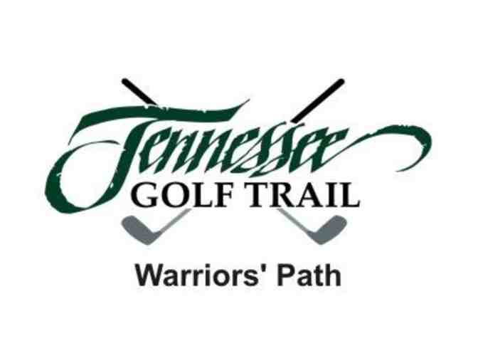An 18-hole round of golf for four with carts and one large bucket of range balls per person at Warriors Path Golf Course in Kingsport, TN. Appropriate golf attire is required. Certificate expires May 1, 2015 and is not valid on holidays. Call pro shop at 423-323-4990 for availability. URL: www.tngolftrail.net/traditionals/warriorspath/