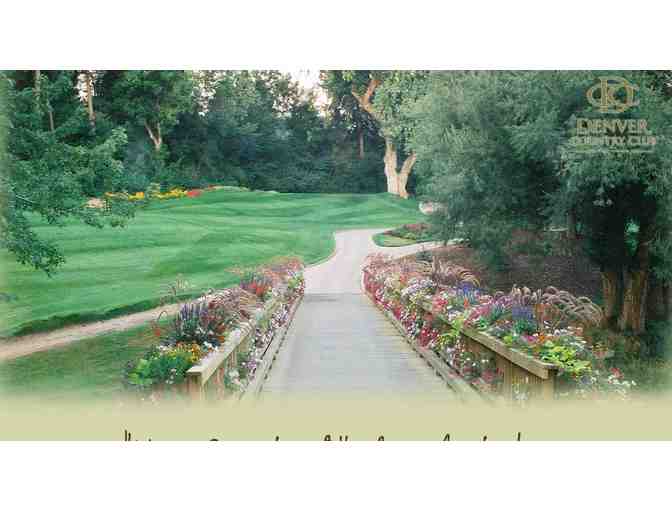An 18-hole round of golf for three (a foursome with a club representative) with carts at Denver Country Club in Denver, CO. Appropriate golf attire required. Valid all dates exempting June 18-21, 2014 and July 10-12, 2014. Certificate expires one year from date of purchase. URL: www.denvercc.net