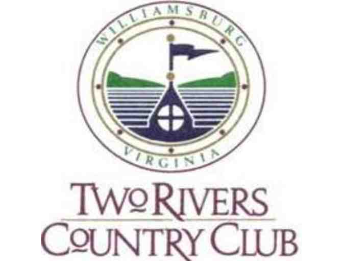 EXPIRES EARLY! An 18-hole round of golf for four with carts at Two Rivers Country Club in Williamsburg, VA. Proper golf attire required. Call Pro Shop to schedule tee time in advance. Valid Tuesday through Sunday after 12:00pm. Expires December 30, 2014. URL: http://www.governorsland.com/