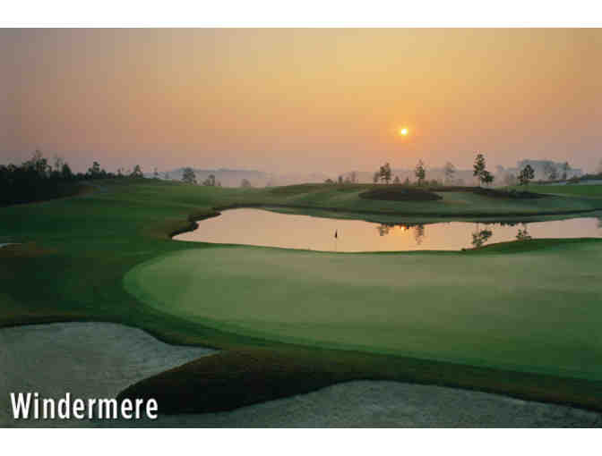 An 18-hole round of golf for four with carts at Windermere Golf Club in Cumming, GA . Proper golf attire is required (Collared shirts,no denim) Offer is valid Monday- Friday at any time, excludes holidays. Certificate expires July 15, 2015. Please make reservations two days in advance. URL: http://canongategolf.com/