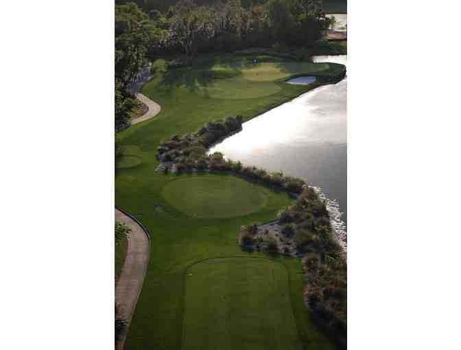 A foursome with carts at Celebration Golf Club in Celebration, FL