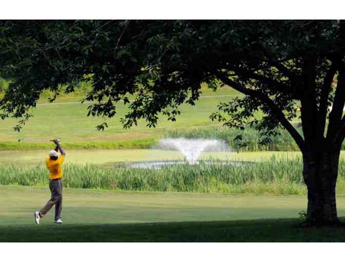 An 18-hole round of golf for four with carts at Hobbit's Glen Golf Club in Columbia, MD. Proper golf attire required, no jeans allowed. Valid Monday- Thursday 7:30 am - 5:00 pm, Saturday and Sunday after 1:00 pm. Call Pro Shop to schedule tee time. Expires one year from purchase. URL: http://www.hobbitsglengolfclub.com/