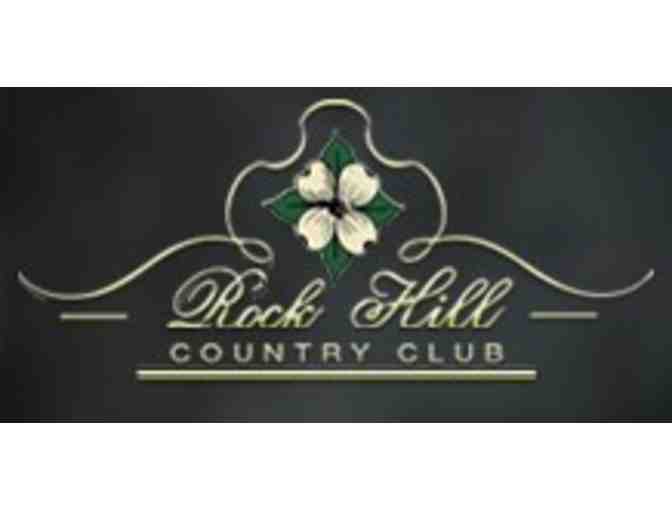 An 18-hole round of golf for four with carts at Rock Hill Country Club in Rock Hill, SC. Golf appropriate attire required. Certificate expires one year from purchase. URL: www.rockhillcountryclub.net.