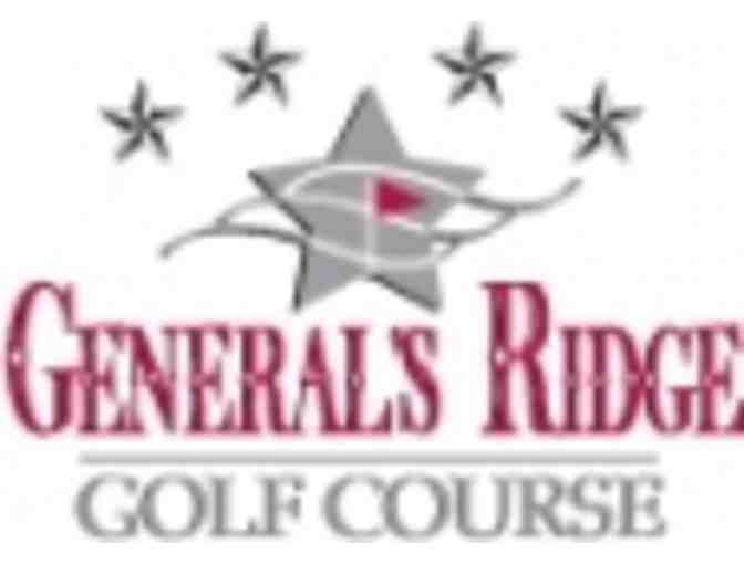 Expires Early! An 18 hole round of golf for four with cart at Generals Ridge Golf Course in Manassas Park, VA. Restrictions: Available Monday through Friday anytime. Certificate expires December 31, 2014. URL: www.generalsridge.com.