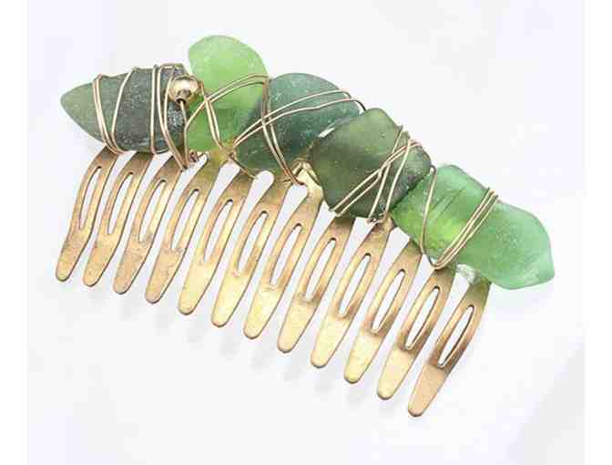 If you have ever held a piece of sea glass or pottery, you would know there is no substitute for how it feels in the palm of your hand and how it takes shape as a result of its travels in and out of the high seas. With tide chart in hand, and just after a big storm, I look for days when I can begin my search at the morning low tide, when the sun is low and I can walk the beaches in solitude. Unique piece of hair art or an eye-catching brooch