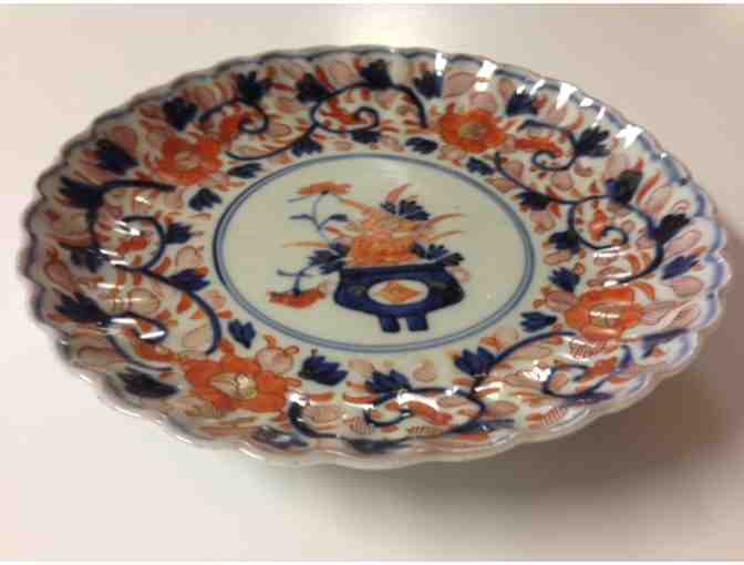 Intricate, with bold Imari colors of apricots and blues. Mid-nineteenth century 8” Chinese Imari Plate with scalloped edge.