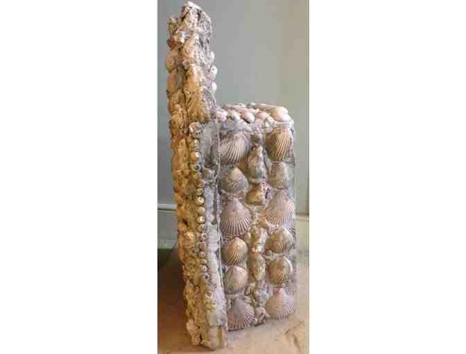How does your garden grow? Beautifully around a hand-crafted garden ornament. This fabulously unique concrete sculpture features inlays of shells of all kinds. Use your imagination to fill the center display...your favorite crawling plant, bird seed, or even another sculpture (perhaps a bird or garden toad).