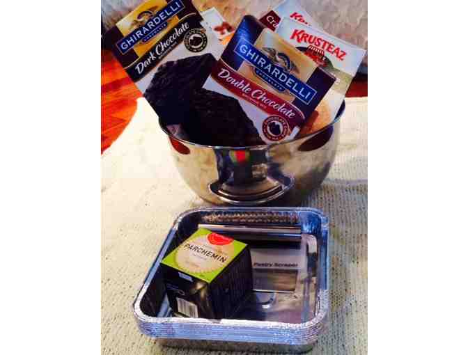 This item includes eight baking mixes along with muffin liners, disposable pans, and a few handy baking tools. All of this is in an oversized Stainless steel mixing bowl (8 quarts!!) that will come in handy for many things besides baking