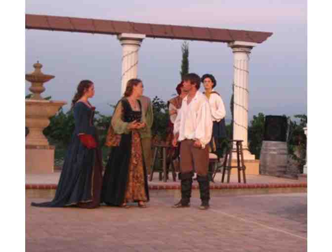 Shakespeare in the Vines presents outstanding theatrical entertainment of the Bard's greatest plays in the beautiful vineyards of Temecula Valley in sunny Southern California. Dine under the moon and stars amidst the vines, while drinking the finest of our award-winning Temecula wines. Shakespeare in the Vines is recognized as the Inland Empire's People's Choice Award for Outdoor Events and is a proud member of the Shakespeare Theatre Association of America and the Theatre Foundation.