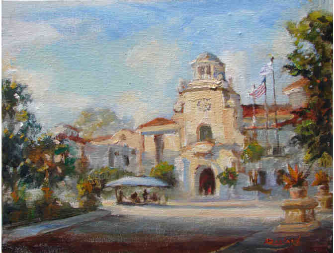 This beautiful Framed & Signed Print of Jack Ragland's Painting of Temecula City Hall suggests the ambience of an old world setting.