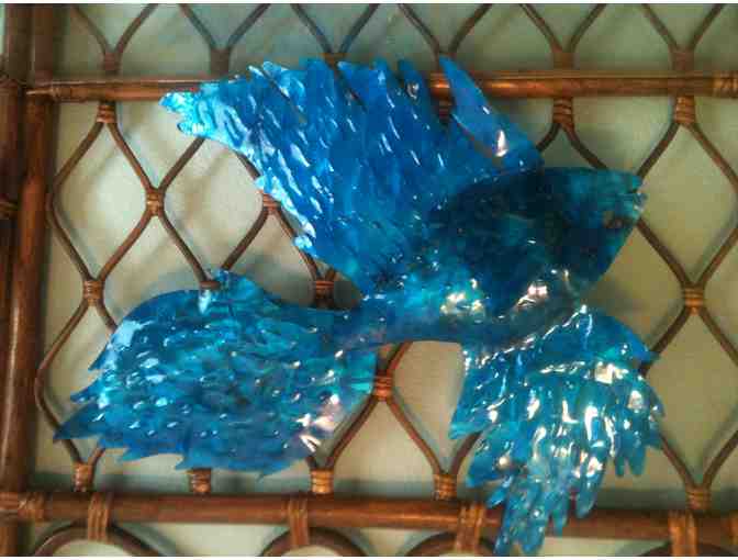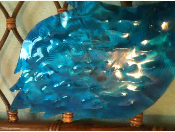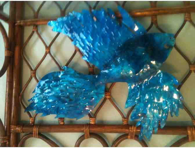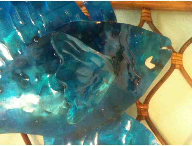 Beautiful handsculpted and enameled Betta Blue Fish wall hanging by Sculpture Artist Ricardo Breceda - perfect for home and garden! Large fish measures approximately 30"