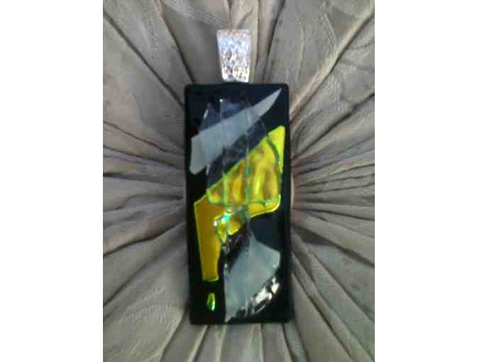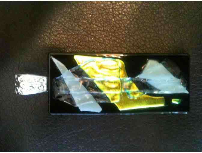 This brilliant cabochonby jewelry artist, Joan Flax, is fused Dichroic Glass and have been kiln fired three times each for between 8