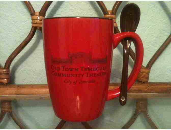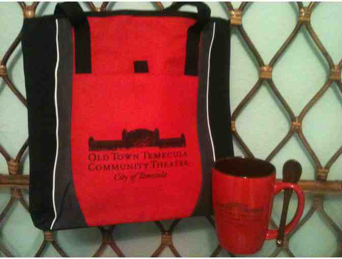 Enjoy your favorite brew with a coffee mug and spoon from Old Town Temecula Community Theater. Comes with a matching tote bag w/zipper.