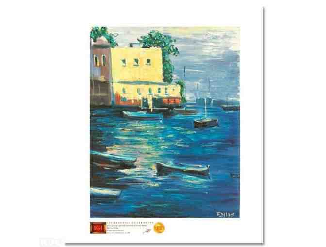 BID FOR THE OPPORTUNITY TO ENJOY THE SCENIC WORK OF ELLIOT FALLAS! Free flowing natural talent gives birth to a wondrous scene! "Fisherman's Tavern" is a numbered limited edition plate signed Giclee on un-stretched canvas by Elliot Fallas! Includes Certificate of Authenticity! Measures Approx: 15" x 20" (image). List price: $240.00