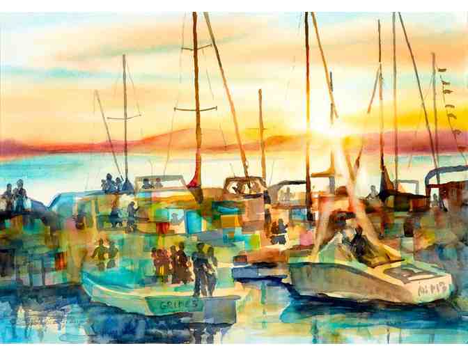 "Waterfront Sunset" by Artist Kathleen Berry Bergeron: 9 1/2x12" CANVAS!