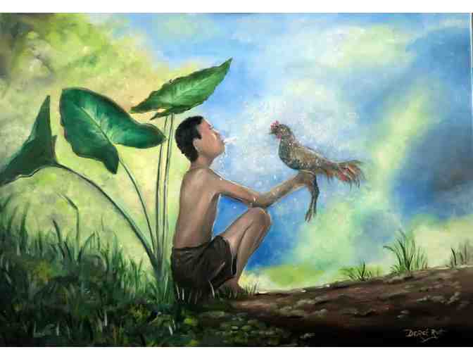 "Thai Boy Waking Up His Prize Chicken" by Artist Derek Rutt: 10x14" CANVAS!