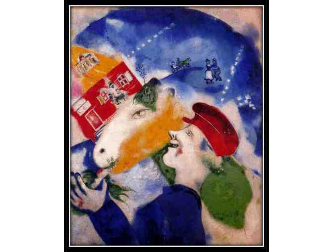 Marc Chagall was born Moishe Shagal on July 7, 1887, in Vitebsk, Russia, to a poor Jewish family that included ten children. His father, Zakhar Chagall, worked in a fish factory and his mother, Ida Chagall, worked in the family home and ran a grocery store. The years of his childhood, the family circle, and his native village became the main themes of his art. These first impressions lingered in his mind like original images and were transformed into paintings with such titles as the Candlestick with the Burning Lights, the Cow and Fish Playing the Violin, the Man Meditating on the Scriptures, the Fiddler on the Roof, and I and My Village. According to French poet and critic André Breton (1896–1966), with Chagall "the metaphor [comparison of images] made its triumphant return into modern painting." And it has been said that Pablo Picasso (1881–1973) was a triumph of the mind, but Chagall was the glory of the heart.