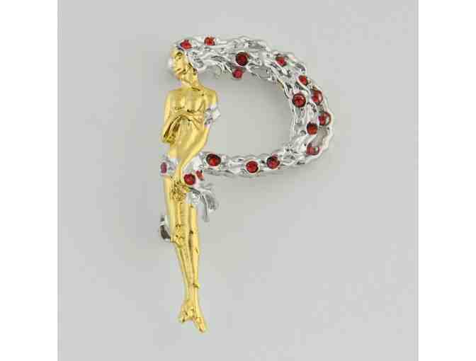 THIS IS YOUR GOLDEN OPPORTUNITY TO OWN A GENUINE ERTE ART DECO CREATION! From an original design by the “Father of Art Deco”, Erte’s famous “Alphabet” series was first a Suite of Serigraphs and then a priceless collection of figures cast in precious metals set with gemstones. We are pleased to present this sparkling Pendant/Brooch depicting the letter “D”, made of solid gold-plated Sterling Silver and hand-set Swarovski crystals, cast from the same mold used to create the original! This piece comes in a simple and pretty gift box with the Erte stamp on it. Officially Licensed by the Estate of ERTE, bearing the official stamp of his signature! Measures approx. 1.5" x 1", 3.6 grams (weight).