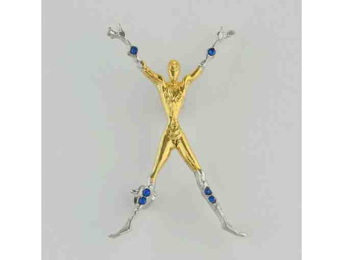 From "The Father of Art Deco" Erte! Dazzling "X"-shaped Pendant/Brooch, made of Gold-Plated Sterling Silver, with Hand-Set Swarovski Crystals!